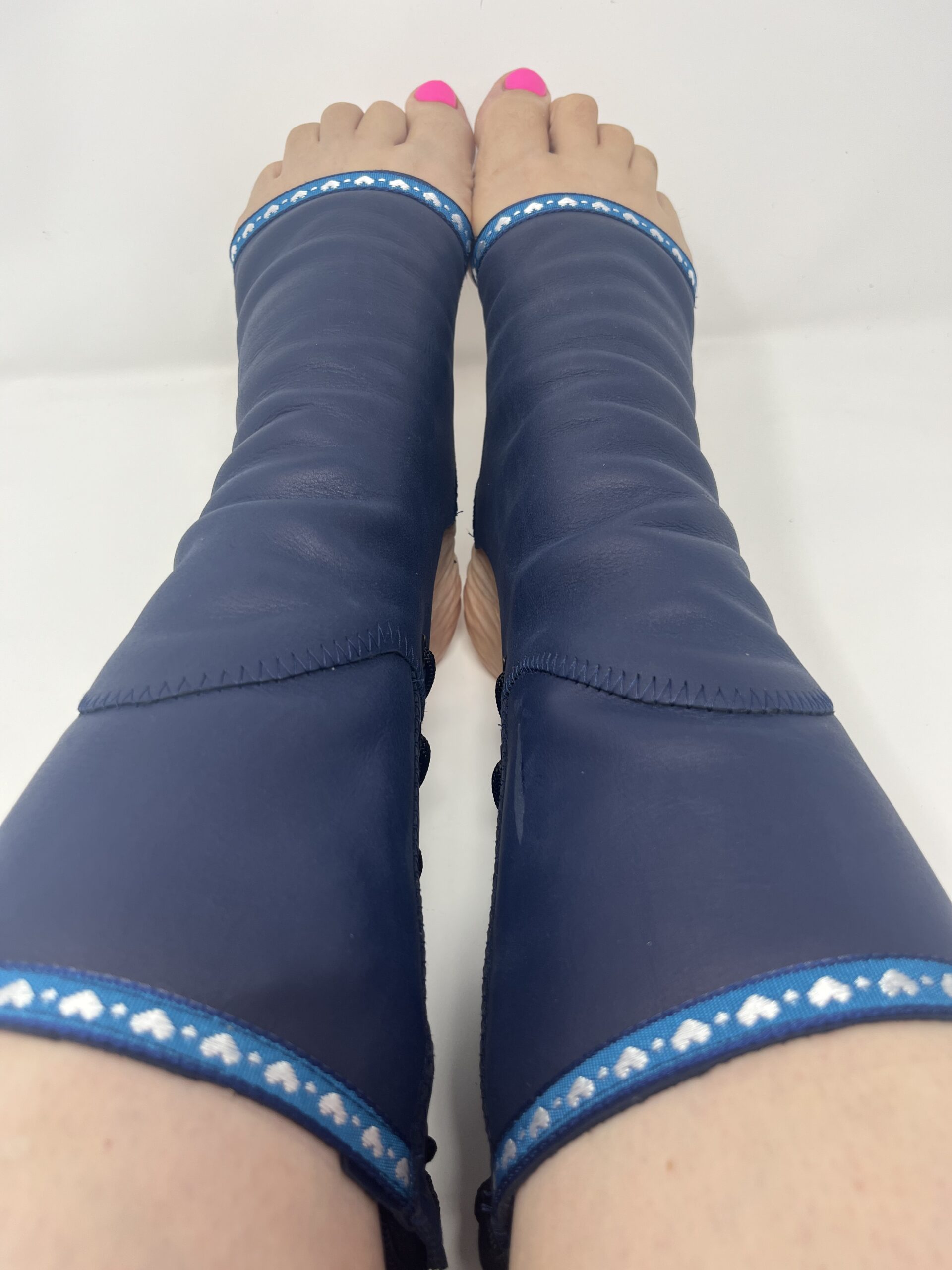 Blue Leather with Heart Trim Trapeze Boots (Gaiters)